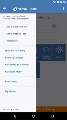 Varsity Tutors' AP Environmental Science Android app offers powerful free tools for AP Environmental Science including full-length diagnostic tests, flashcards, questions of the day, and more that can significantly aid you in your studying.