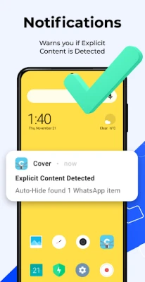 Smart Notifications: Cover will subtly notify you if explicit content photos or videos are detected.