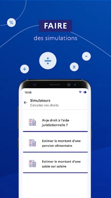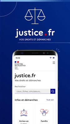 ■ Vous informer sur vos droits et démarches ■ Utiliser des simulateurs : aide juridictionnelle, pension alimentaire et saisie sur salaire ■ Entreprendre des démarches ■ Trouver un lieu de justice : tribunal, point-justice, service d’accueil ■ Appeler des numéros utiles pour être écouté et orienté selon les situations ■ Accéder aux annuaires des professionnels du droit