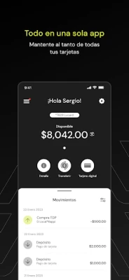 · Consulta tu balance y movimientos de tu cuenta en todo momento sin acudir a un cajero. · Usa tu tarjeta digital para compras en línea con tu cvv dinámico · Con tu bloqueo temporal siéntete seguro en bloquear y desbloquear tu tarjeta en cualquier momento. · Si necesitas ayuda podrás contactarnos a través de soporte, uno de nuestros asesores te apoyará. · Transferencias electrónicas · Paga tus servicios. · Retira efectivo en tu cajero de preferencia