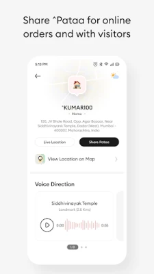 Pataa offers the convenience of recording the address in your voice or text-to-speech recording and sharing for easy navigation.