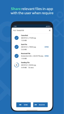 Transfer files to and from your android device during a remote access session. Send and receive files even to a remote unattended computer.